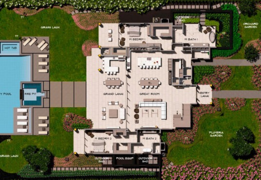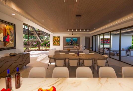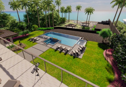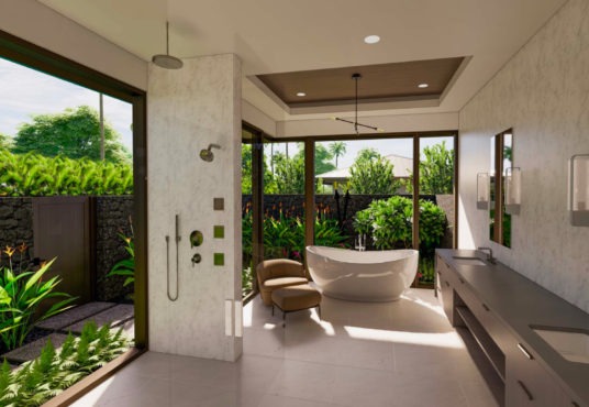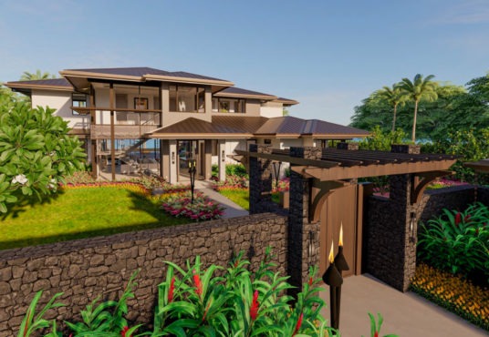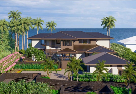 A full set of architectural plans for a 6,054 square foot contemporary Hawaii-style home are currently being processed for permit. The proposed residence blends natural materials with luxurious design, creating a sanctuary of tranquility, sophistication, and indoor-outdoor living. This new waterfront estate even allows the owner to make unique changes to ensure a custom home with personal touches in every part of the home.
