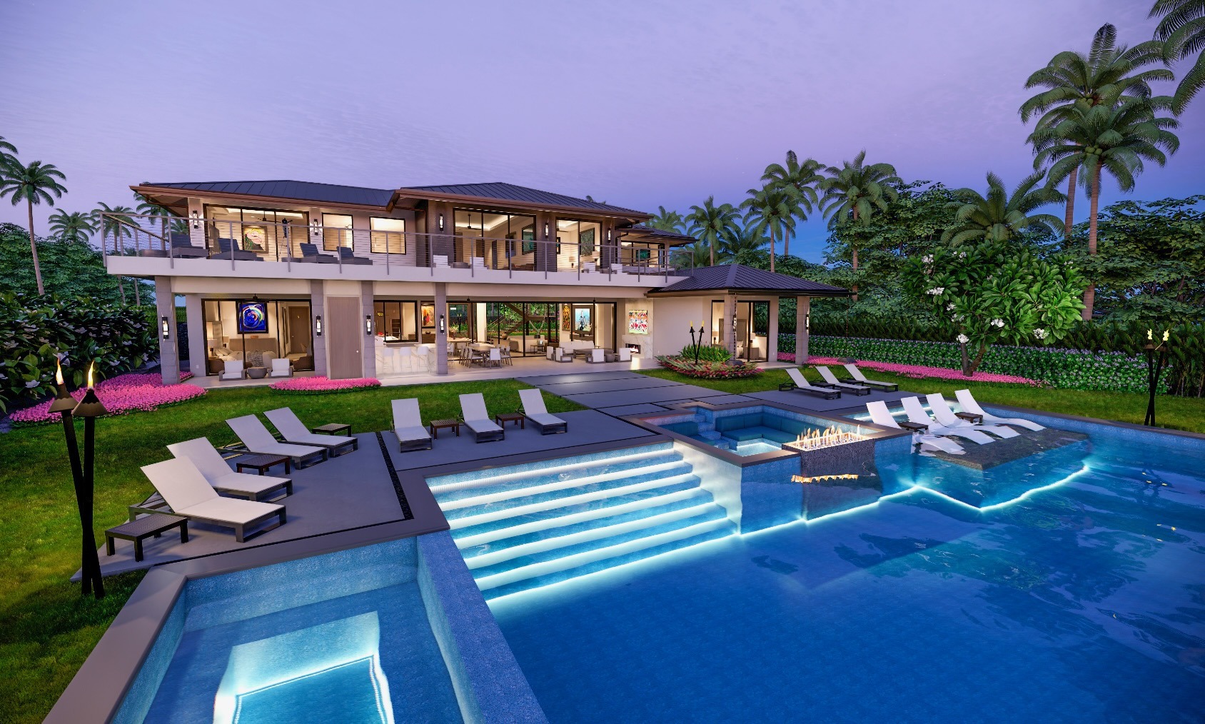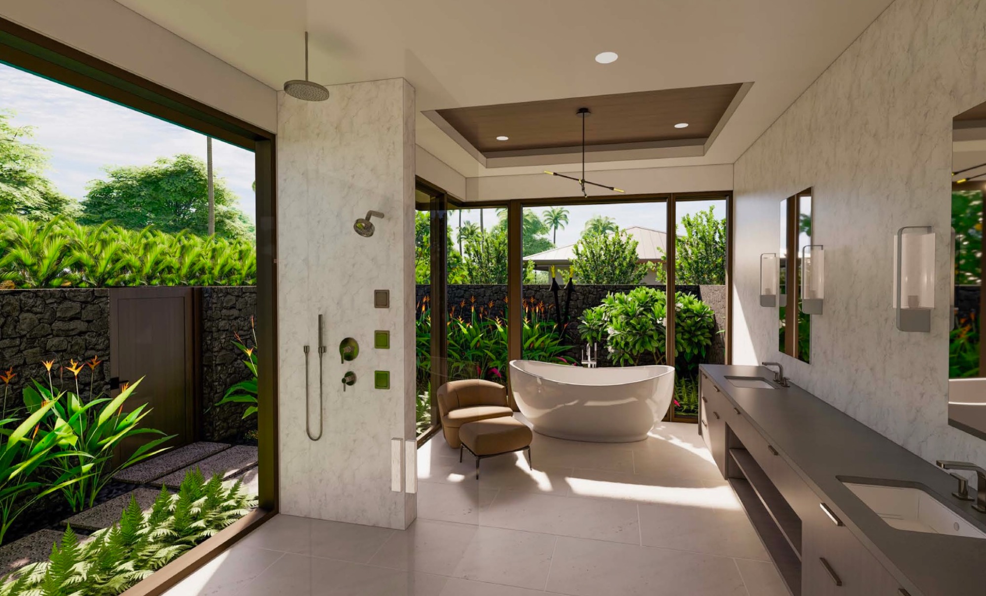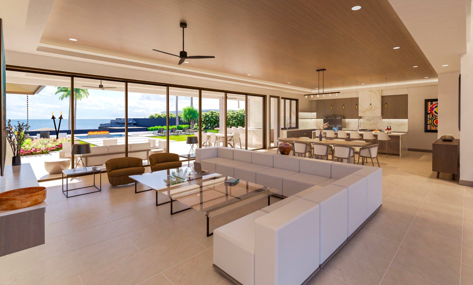 A full set of architectural plans for a 6,054 square foot contemporary Hawaii-style home are currently being processed for permit. The proposed residence blends natural materials with luxurious design, creating a sanctuary of tranquility, sophistication, and indoor-outdoor living. This new waterfront estate even allows the owner to make unique changes to ensure a custom home with personal touches in every part of the home.